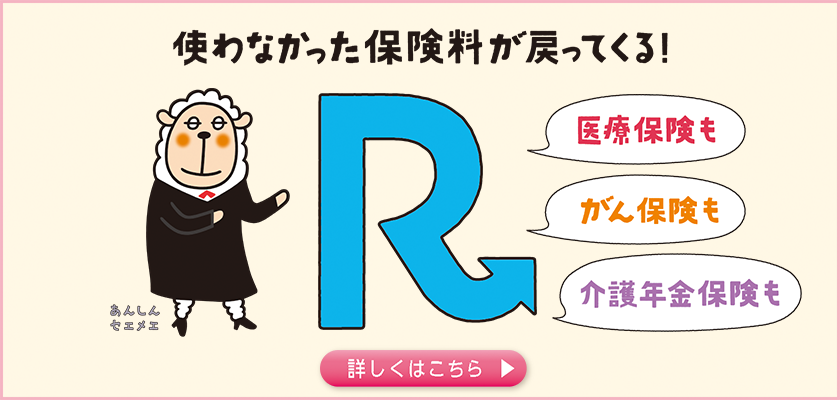 所定の年齢までにお払い込みいただいた保険料の使わなかった分をお戻しする保険「Rシリーズ」をご用意しております。
